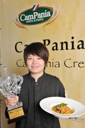 第五屆CamPania盃義大利麵創意比賽冠軍總決賽在台北市開平餐飲學校展開!入圍的24位名店名廚,經過2個小時奮戰,分別選出前9名,獲得特金獎、金獎、銀獎、六名優勝,及特別獎「最佳人氣獎」。